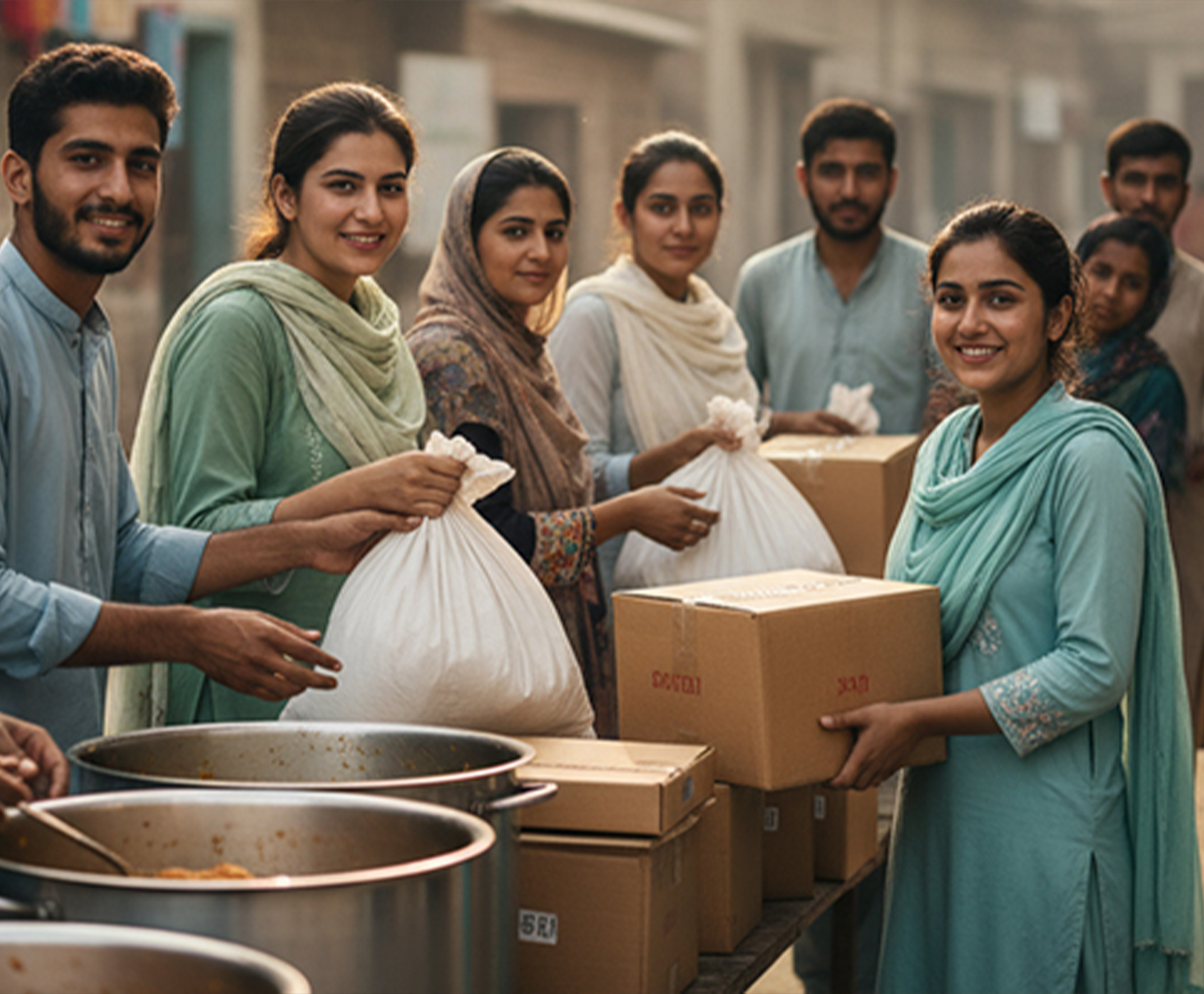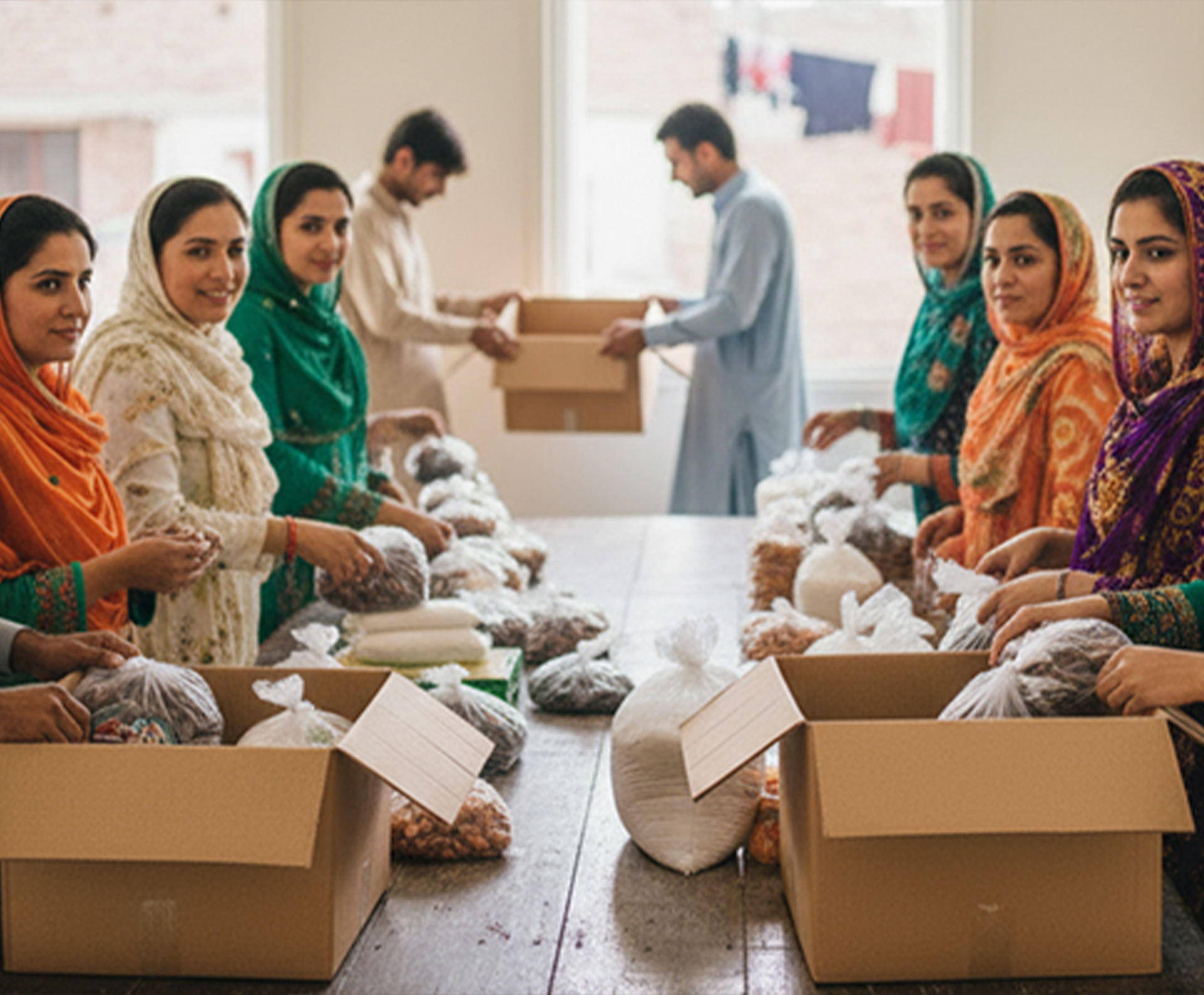 🕌 Ration Distribution — Supplying essential food packages (flour, rice, pulses, oil) to poor and displaced families.